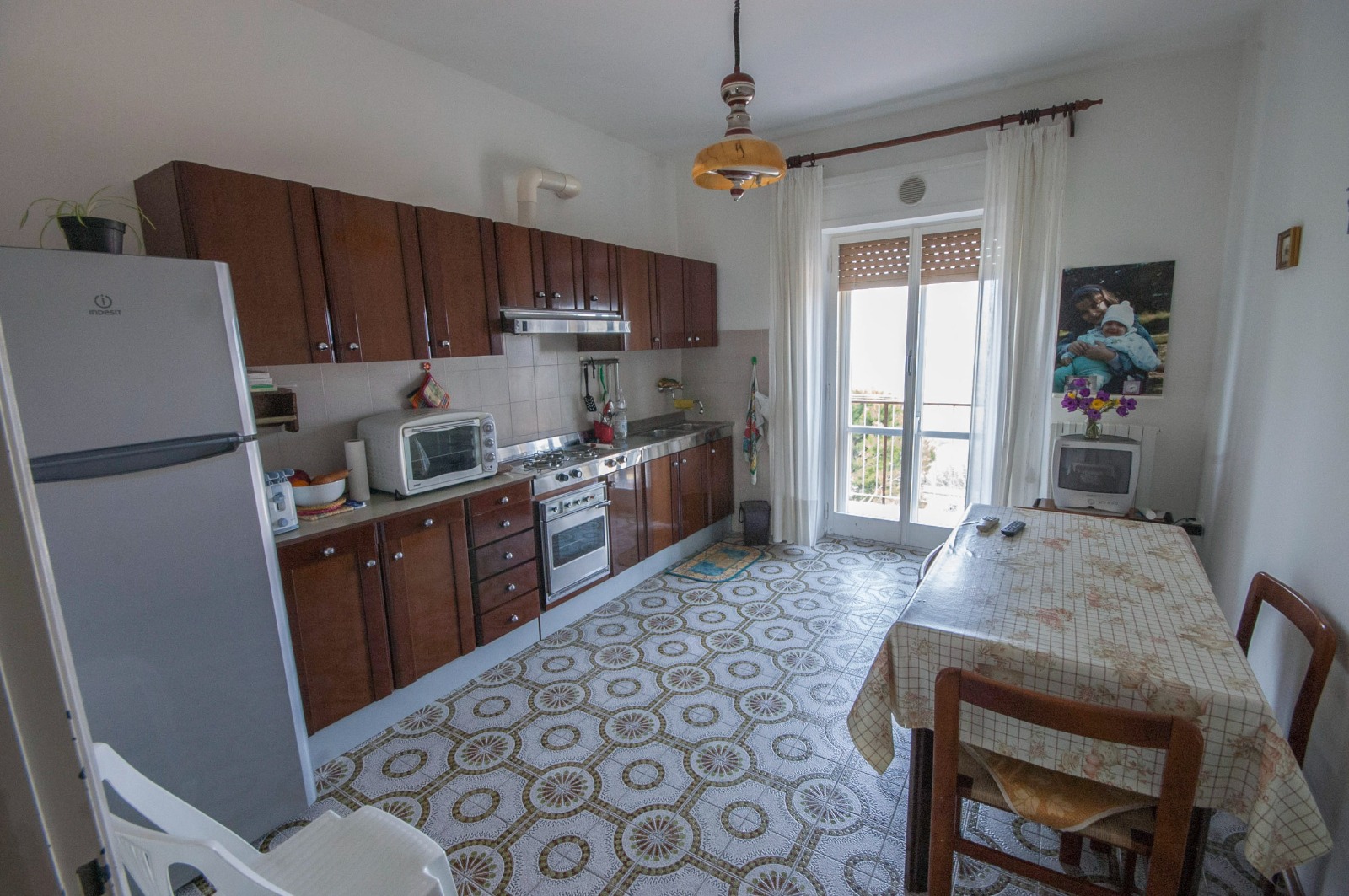 L’appartamento dispone di tre camere da letto, ideali per una famiglia numerosa o per ospitare amici e parenti, ampia cucina abitabile con balcone, salone con disimpegno esterno, e bagno.